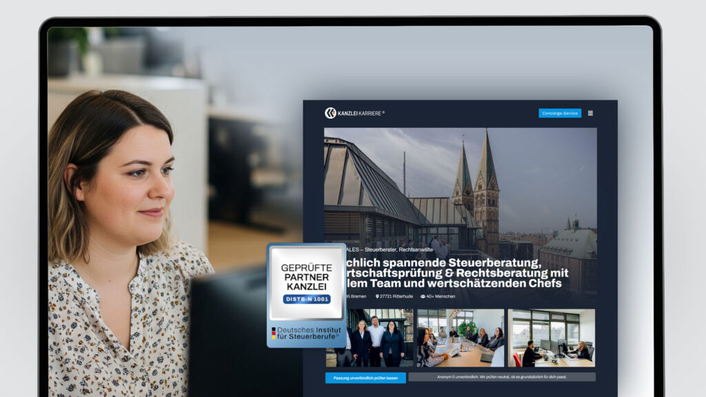 Sichere Entscheidungen für einen Job mit einem guten Bauchgefühl – Dabei helfen wir dir. Du wirst verstehen, wie der Arbeitsmarkt tickt, wie es in anderen Kanzleien aussieht und was man beim Wechsel beachten soll. Informiere dich erst und schicke dann deinen persönlichen Concierge bei uns auf den Weg.