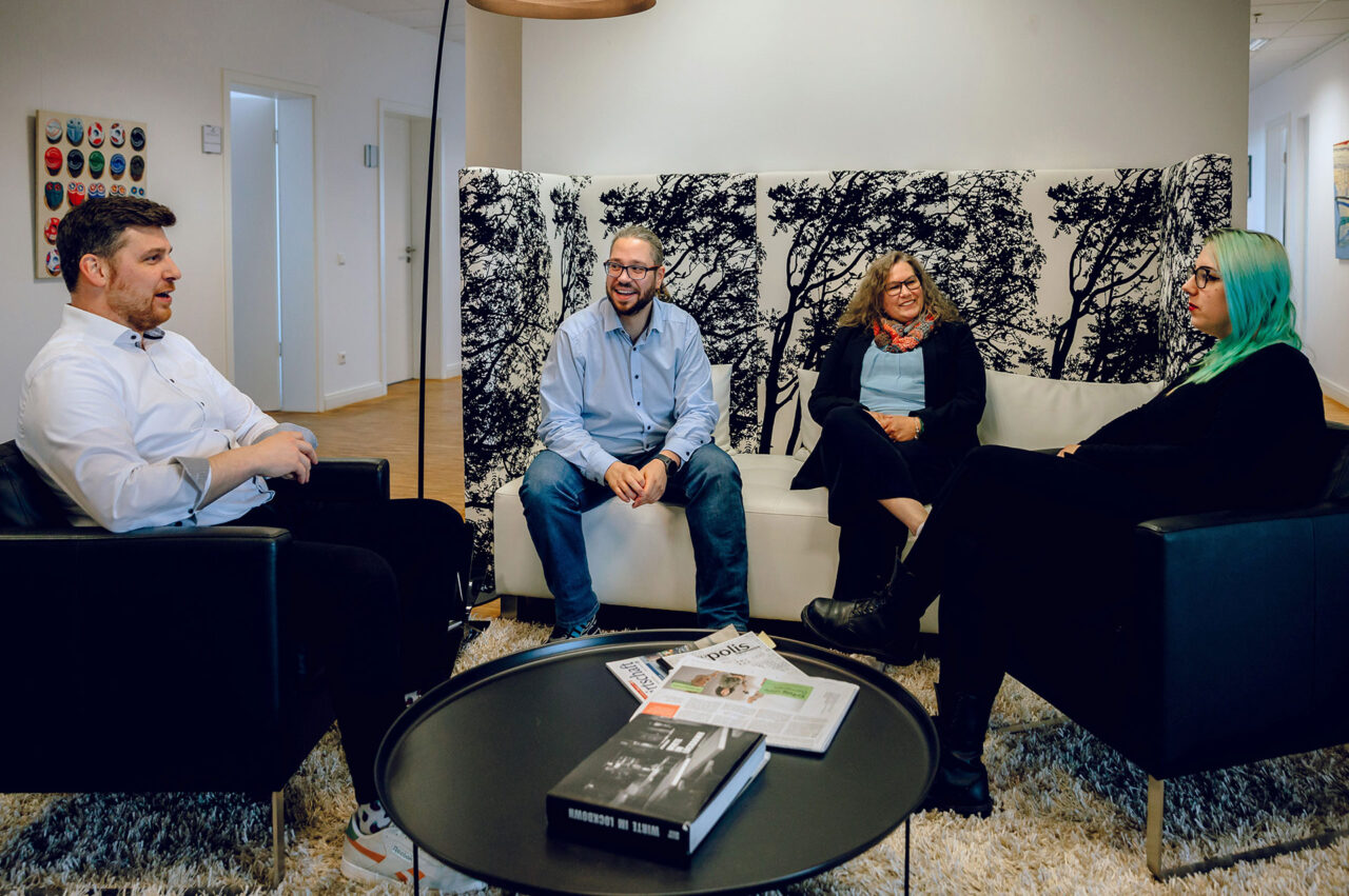 Und natürlich kann man bei uns auch unbürokratisch von zu Hause aus arbeiten. Unsere Erfahrung zeigt aber, dass der Umfang individuell vereinbart werden muss. Und ganz ehrlich – bei unserer Teamgröße haben wir die Leute schon gerne im Büro. Aber am Ende des Tages kann man mit uns über alles reden. Wir machen vieles möglich, wenn es menschlich und fachlich passt.