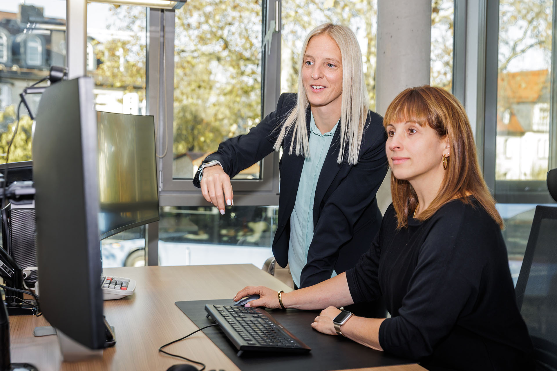Matthias Pilger: Das Steuerrecht ist ja bekanntlich keine Konstante. Insofern muss man immer wieder fachlich nachziehen oder teilweise sogar vorlegen. Damit das möglichst reibungslos und ohne Stress stattfindet, kann jeder im Team eigenständig Weiterbildungen planen. Zusätzlich haben wir für jeden Mitarbeiter den Zugang zur DATEV Lernplattform online. Und wir tauschen uns innerhalb der Fachbereiche und auch im gesamten Team zu Neuerungen und Entwicklungen aktiv aus. So ist man sicher unterwegs. Natürlich kann man auch so jederzeit uns Chefs und auch jeden Steuerberater bei uns fragen. Die Türen stehen offen. Und man kann auch Fragen einfach über MS Teams an die Kollegen senden.